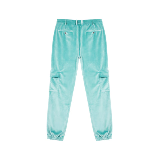 Lake Blue Velvet Pleated Cargo Pants