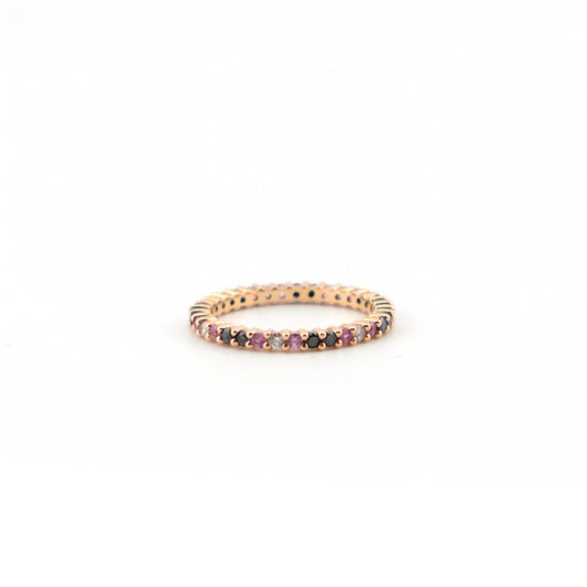 Bague d’éternité – Saphirs roses, Diamants noirs et Diamants