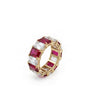 This exquisite eternity ring features rubies and diamonds synthetic arranged alternately along the band. The 14K gold setting ensures durability and elegance, adding a subtle touch of luxury to this exceptional jewel.