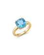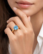 This ring features a brilliant Blue Topaz centerpiece, precisely cut into a cushion shape to maximize light reflection and color depth.