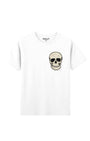 Esta camiseta blanca unisex combina un estilo informal con un toque de originalidad gracias a un sutil pero llamativo bordado de calavera en el pecho. Está confeccionada con una cómoda y duradera mezcla de 80 % algodón y 20 % poliéster, ideal para el día a día.