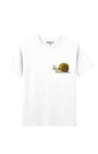 Esta camiseta blanca unisex destaca por su cuidado estampado de caracoles en el pecho, que le aporta un toque divertido y original. Está confeccionada con una cómoda mezcla de 80 % algodón y 20 % poliéster, ofreciendo un excelente equilibrio entre comodidad y durabilidad.