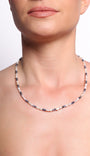 Con un refinado equilibrio de textura y tono, este collar alterna brillantes perlas de agua dulce con cuentas de zafiro azul natural. Su diseño limpio y rítmico ofrece una interpretación moderna de la elegancia clásica, lo que lo convierte en una pieza ideal para combinar con otras piezas o para lucir como un elemento distintivo.