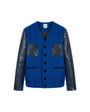 Modèle à la couleur cobalt éclatante, avec manches et poches poitrine en cuir de caïman véritable. Le col en V minimaliste et la silhouette structurée lui confèrent un profil architectural et raffiné. Boutons oversize ton sur ton.