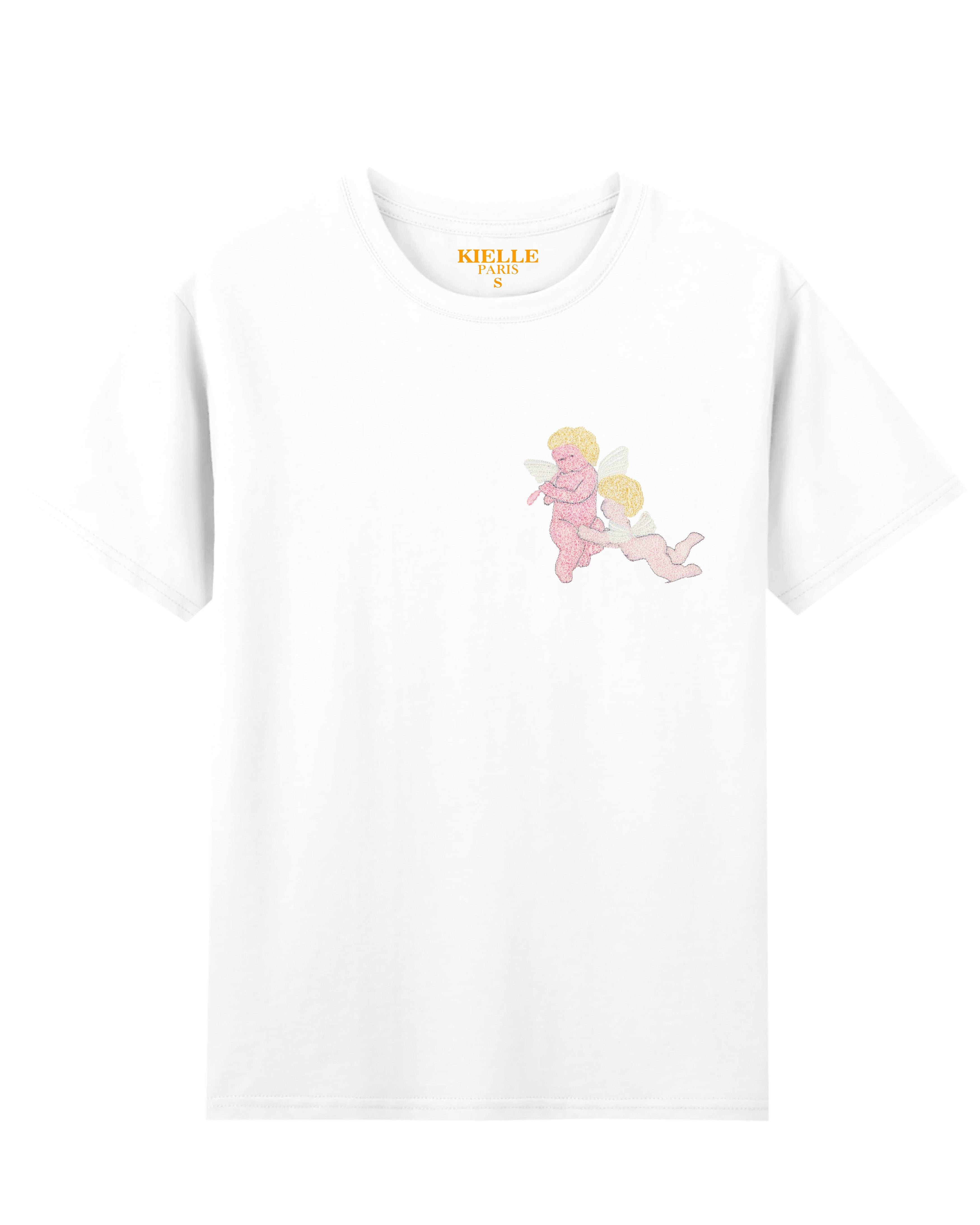 T-shirt unisexe blanc brodé "Cherub Whispers"