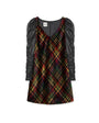 Robe à manches bouffantes en velours de soie à carreaux & peau d'agneau