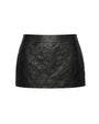Cette élégante mini-jupe est soigneusement confectionnée en cuir d’agneau premium à matelassage diamant, offrant une texture sophistiquée et une finition luxueuse au toucher doux. Conçue avec une attention particulière portée à l’avant, elle est dotée de deux liens intégrés en cuir à la taille, permettant de créer un nœud personnalisé pour ajuster et sublimer la silhouette. Les détails structurés sur le devant contrastent harmonieusement avec le dos épuré et minimaliste, donnant naissance à une pièce moderne et raffinée, véritable élément phare de toute tenue haute couture.