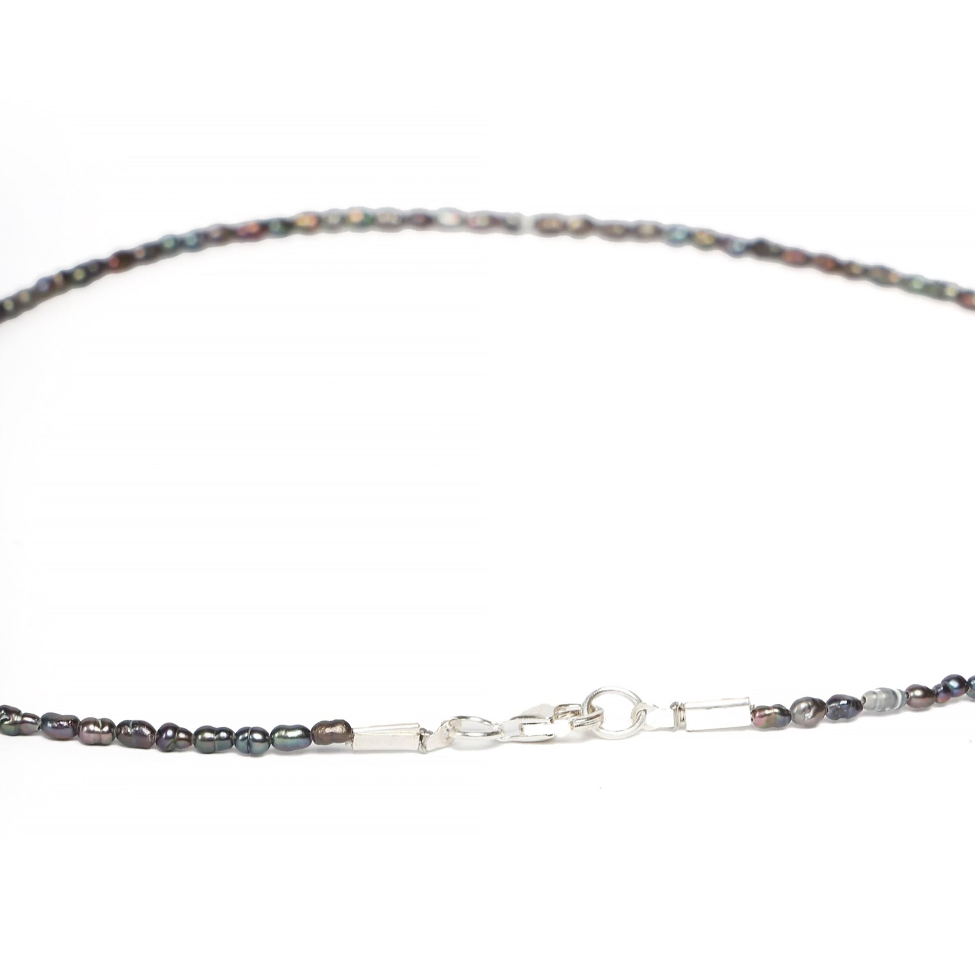Ces perles noires miniatures sont parfaites pour une tenue décontractée. Collier de perles de culture d'eau douce avec détails en argent sterling 925. Le modèle sur la photo porte un 40 cm. collier.