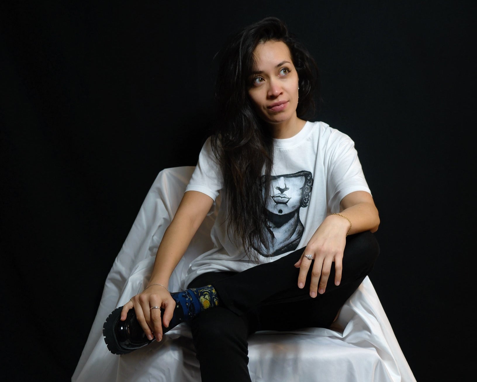 T-shirt graphique unisexe 80 % coton, 20 % polyester avec une version imprimée de Le Bust par Daniella McNulty.