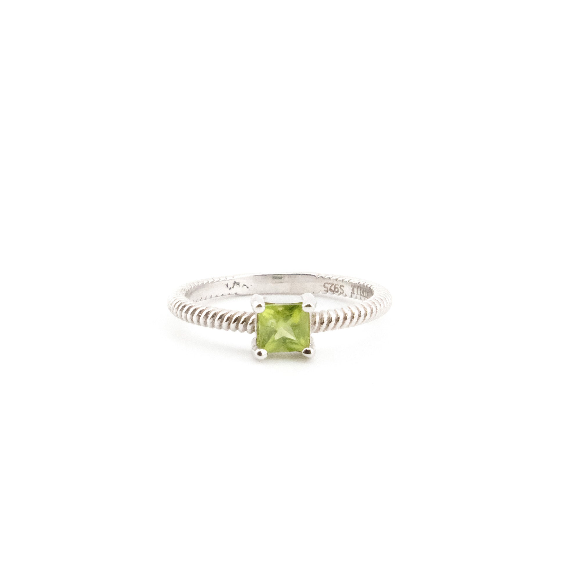 Cette bague torsadée en argent sterling 925 met en valeur un péridot carré d’un vert lumineux. Son design finement torsadé symbolise l’harmonie et le mouvement, tandis que la pierre naturelle apporte une touche de fraîcheur et de vitalité. Chaque pièce est faite à la main avec une grande attention aux détails.