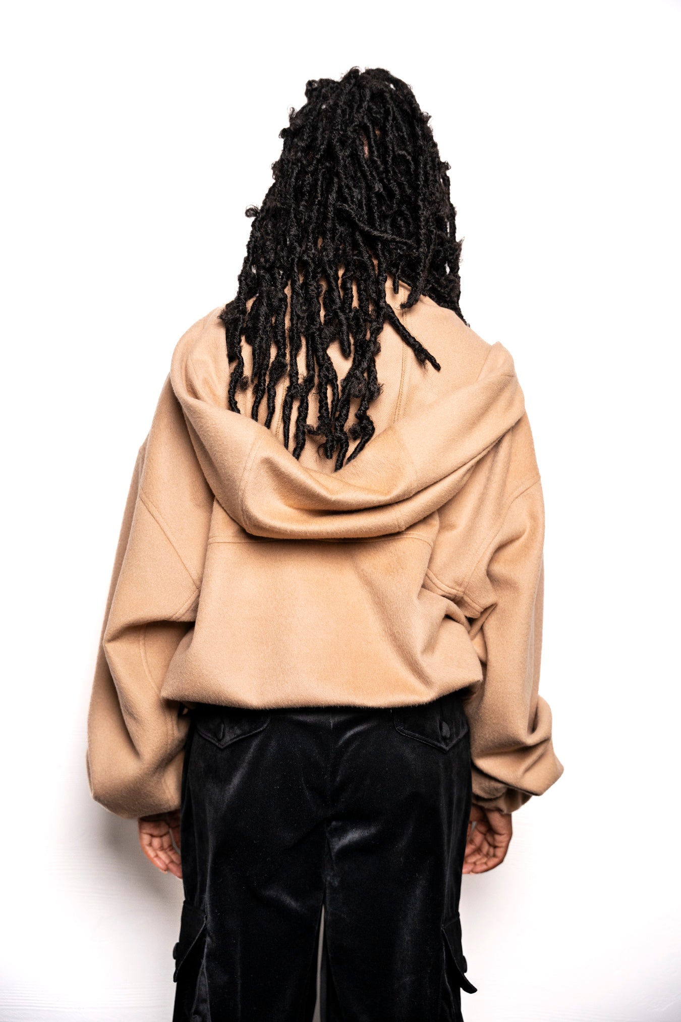 En beige ou noir, c'est la tenue idéale pour le printemps ou l'automne. Ce sweat à capuche est fait de tissu Alpaca « Royal ». Son intérieur est composé à 100% de Bio-Coton, ce qui le rend extrêmement confortable et isolé thermiquement : gardant la bonne température, même s'il ne fait pas trop froid dehors.