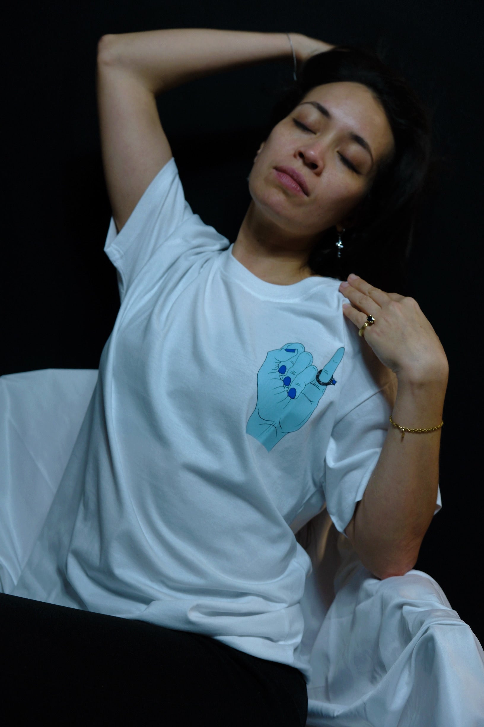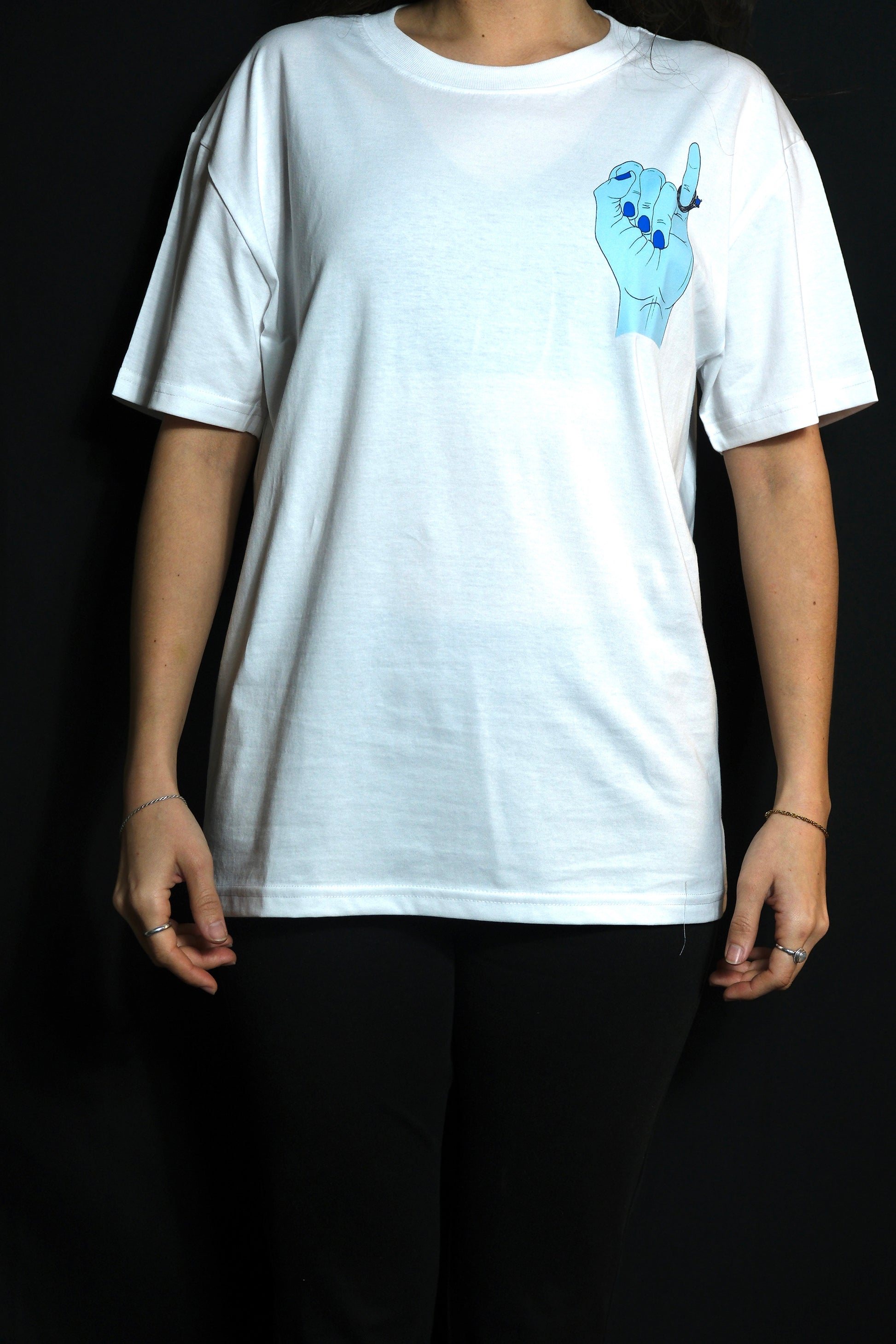 T-shirt graphique unisexe 80 % coton, 20 % polyester avec une version imprimée de La Main par Daniella McNulty.