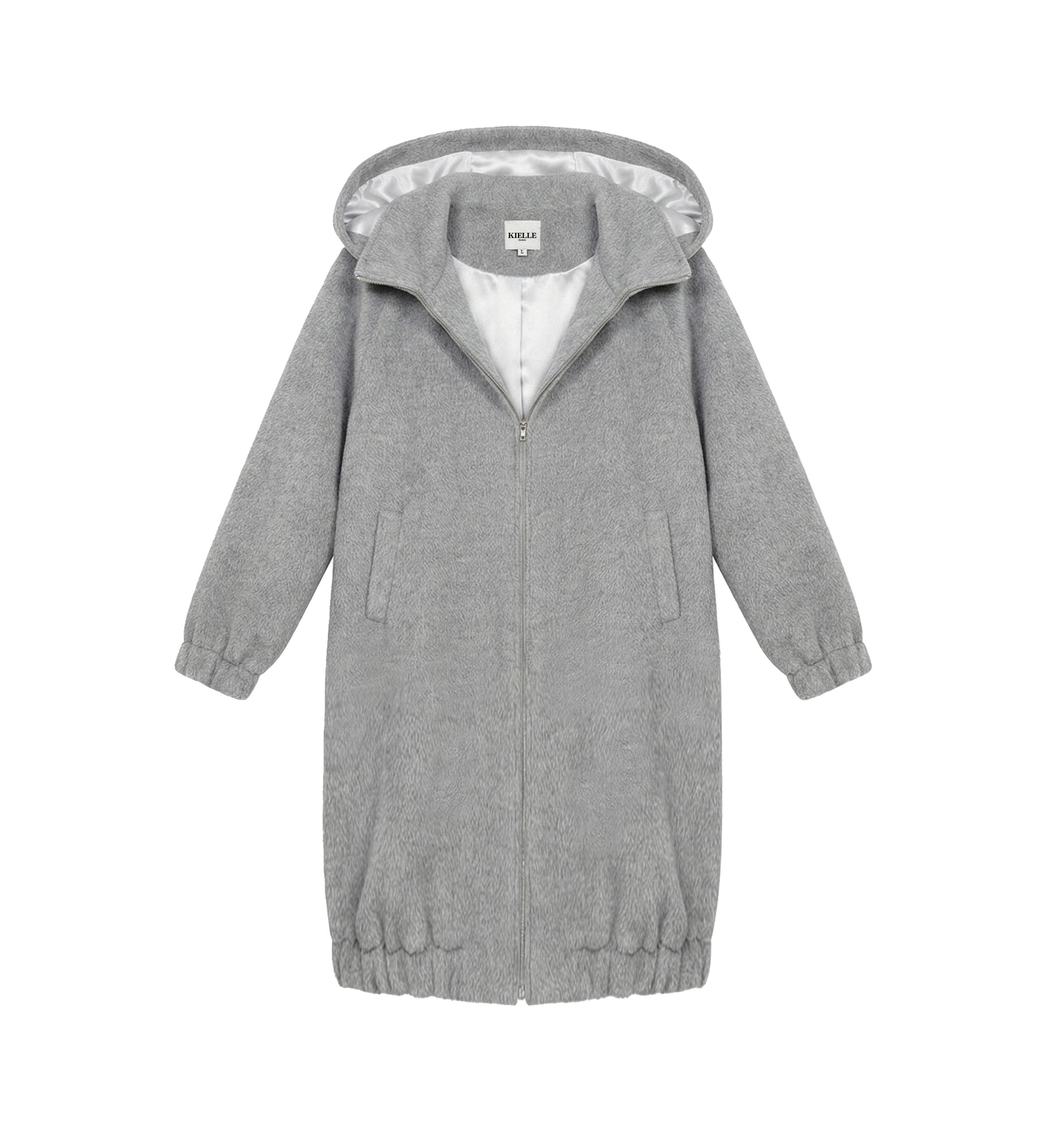 The coat features a front zip closure and a relaxed fit that allows for easy layering. The oversized hood adds both function and a forward, contemporary look, giving the coat a distinctive design character. Elasticated cuffs and hem help maintain structure and warmth.