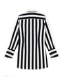 Cette chemise longue à boutons affirme un style graphique audacieux grâce à ses rayures verticales noir et blanc à fort contraste, créant une silhouette nette et élancée. Soigneusement confectionnée en coton 100 % premium pour une sensation à la fois nette et respirante, la matière a été spécialement sélectionnée pour son tombé exceptionnel et sa fluidité, permettant à la longueur supplémentaire de se déplacer avec élégance à chaque pas. Le design est sublimé par un col pointu exagéré et des manches longues aux poignets surdimensionnés, offrant une coupe structurée et confortable, parfaite pour passer d’un look professionnel sophistiqué à un style avant-gardiste et décontracté.
